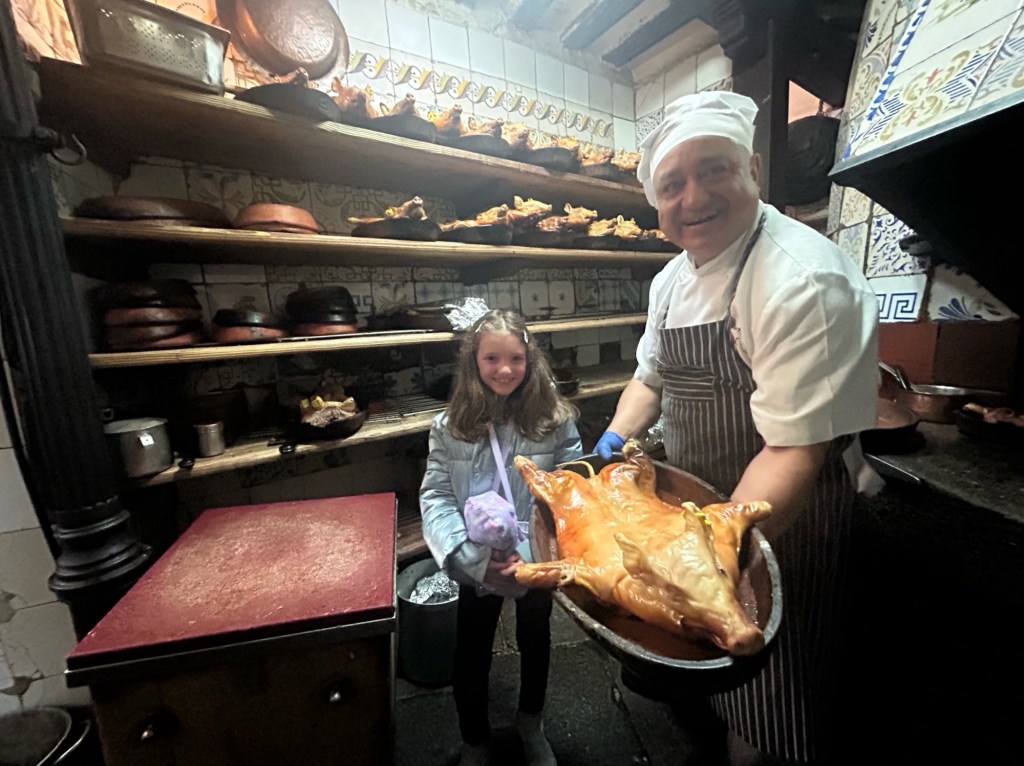 The only plan was to eat late lunch at the oldest restaurant in the world Botin which is right behind Plaza Mayor. This is a reservation must kinda of place. I requested to eat in the cave below and it didn’t disappoint. The chef asked our daughter to come and see how they roast the pigs (their signature dish)and potatoes.